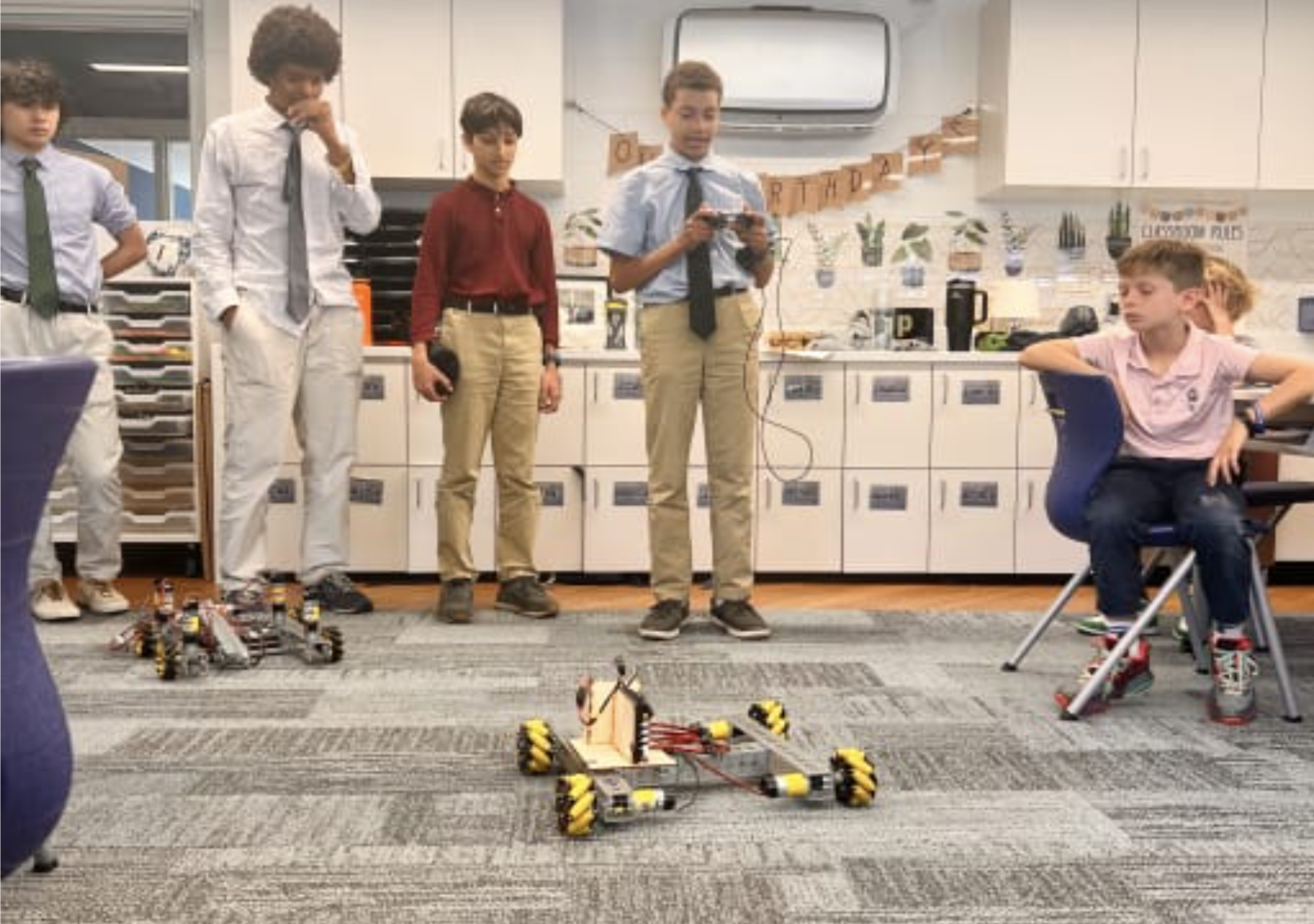 Here at Gilman, engineering is more than just an interest. It’s a sport. Instead of tossing or kicking a ball around, robotics combines the close collaboration of students with the use of technology, creating an environment full of growth and critical thinking processes. The beginning of this school year has marked a momentous advancement in robotics opportunities on campus. A new elective taught by Mrs. Nichols, the Robotics II class, allows students to build and operate BattleBots. They compete in competitions held throughout the year by the organization MACRObots (Maryland Area Combat Robotics Organization), where they go against other teams in exciting head-to-head battles between robots. This course offers an advanced perspective on the topics discussed in the freshman Robotics I course, and is truly a thrilling experience to be a part of. After talking with Mrs. Nichols, it was clear that the sophomores were loving this new addition to the robotics curriculum. “It allows the students to engage with STEM as a team and apply what they already know in a fun and competitive way,” said Mrs. Nichols when asked about the program. “The boys are also taught to prioritize safety in the Robotics lab to make sure we all can have a great time without getting hurt.”